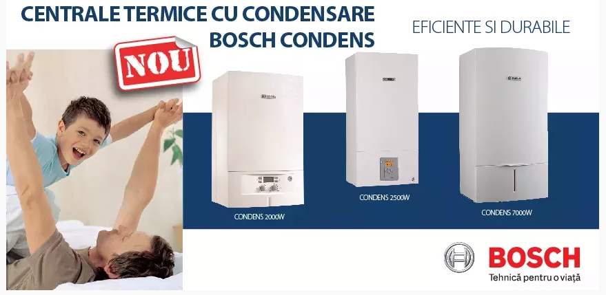 Bosch Condens 5000 W este o centrală termică murală cu condensare de mare putere, functionand pe principiul condensarii cu arzator modulant din inox, si reprezintă o alternativă avantajoasă la cazanele de sol.